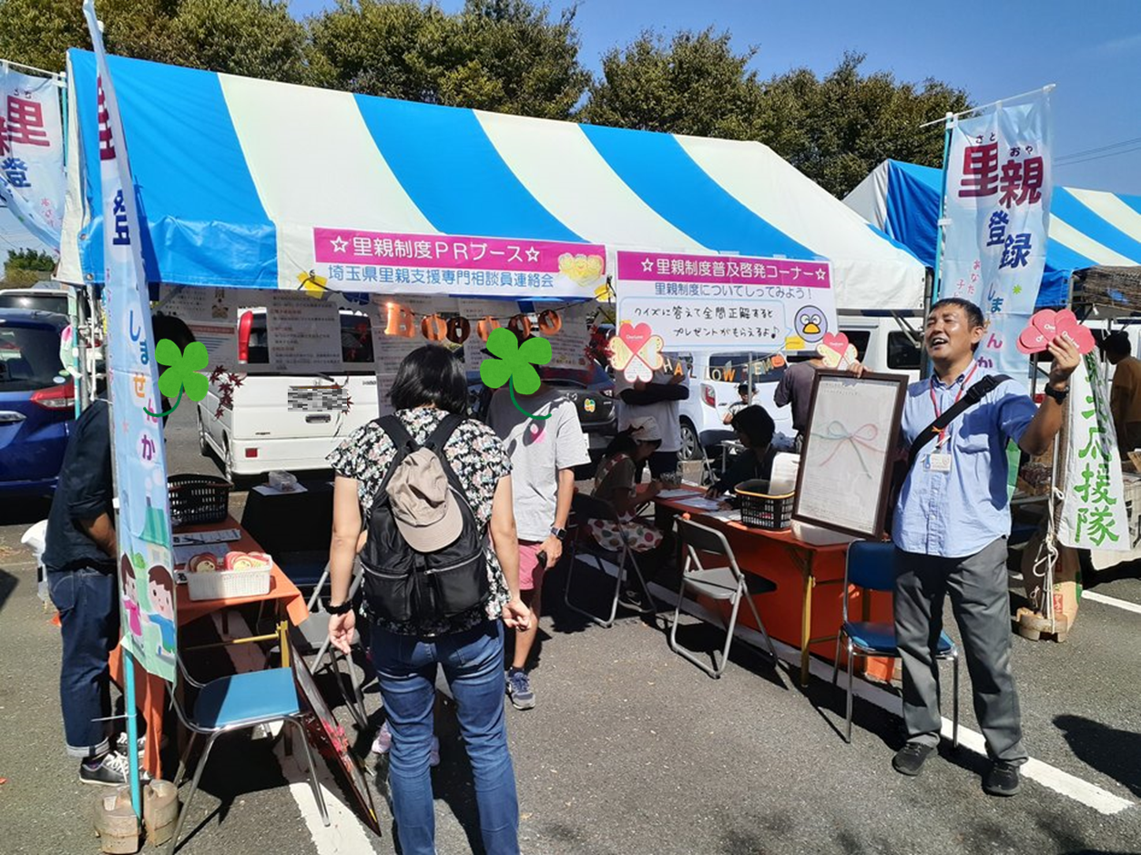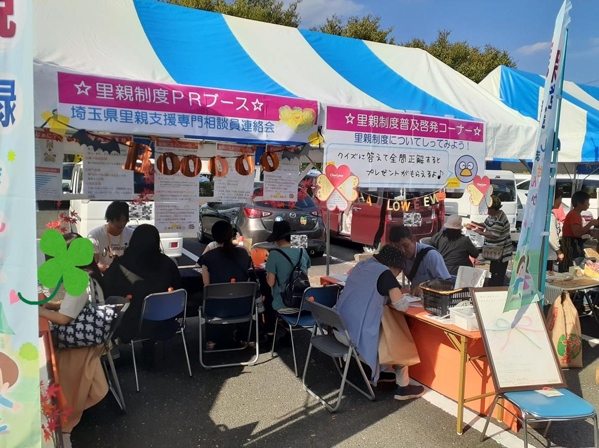 里親制度を地域の方に知っていただくために、10月5日に「あいあいまつり(日高市の福祉祭)」で里親制度PRブースを出展しました♪