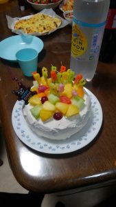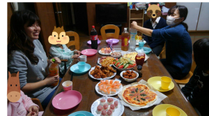 メニューは本人たちの要望で選ばれています。職員3人で分担して調理したそうです。ケーキもピザも手毬寿司も手作りです。見た目から美味しそうですね。実際は見た目以上でした(^^)