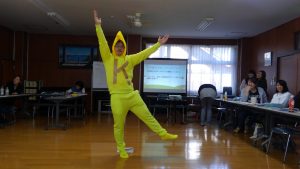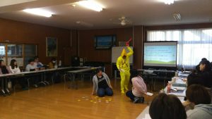 「境界線マン」が現れて、境界線がぶつかって困った場面でレッドカードをしてくれて、研修の場を盛り上げてくれました