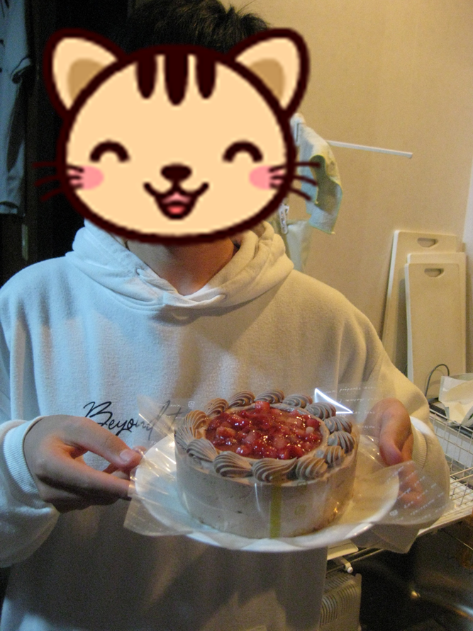 スイーツ好きの中学生は、ケーキを持って撮影📷