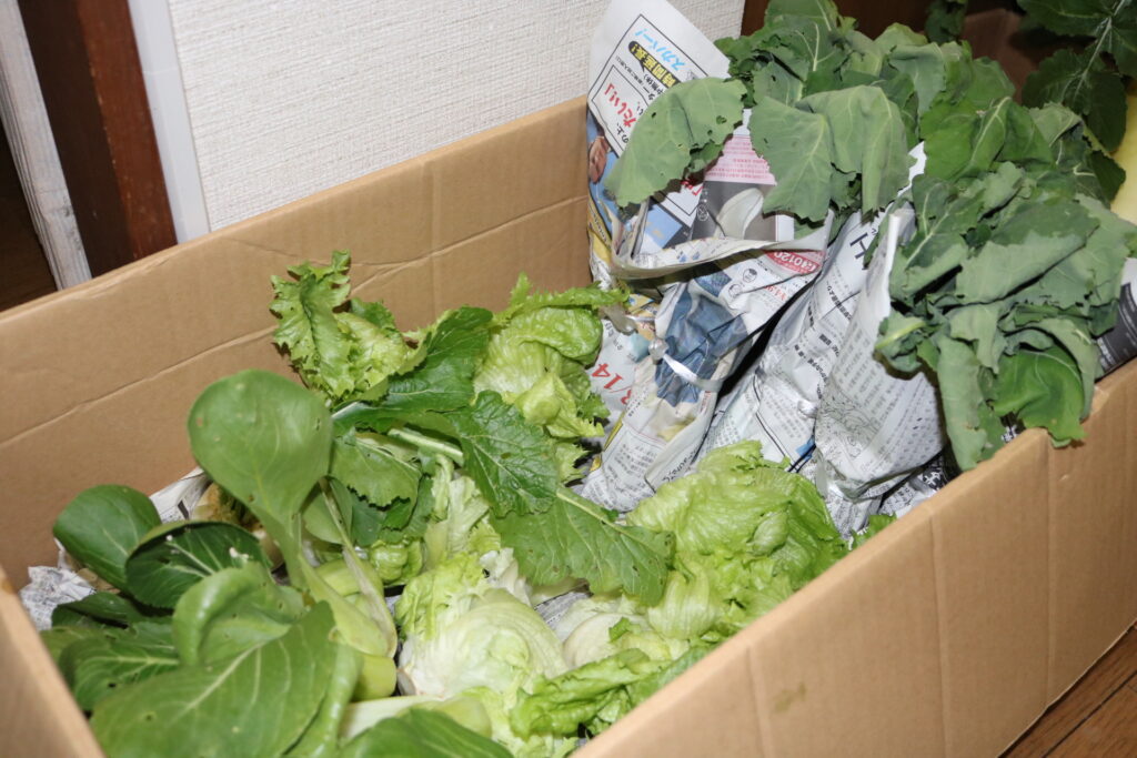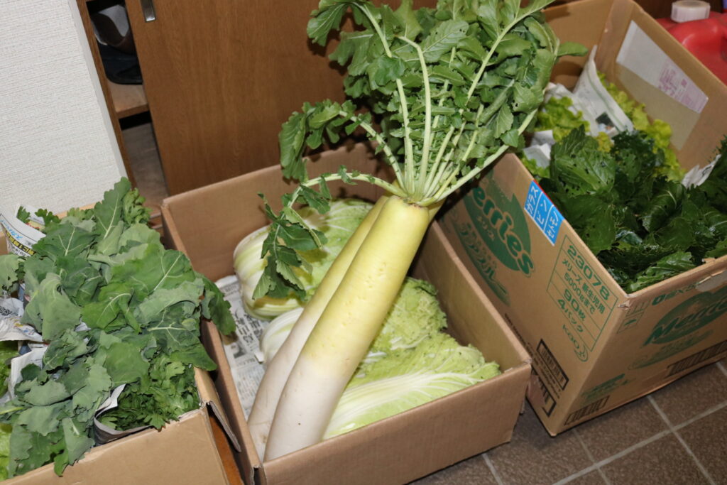 毎週あいの実にはたくさんのお野菜が届きます。趣味で農業をやっている方からいただきます。