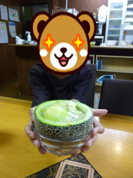 のぞみ寮では、ご支援頂いている星様から頂いたメロンを子どもの要望で豪快にメロンをくり抜いて皮を器にした中にフルーツ、ソーダを入れて食べました!!!