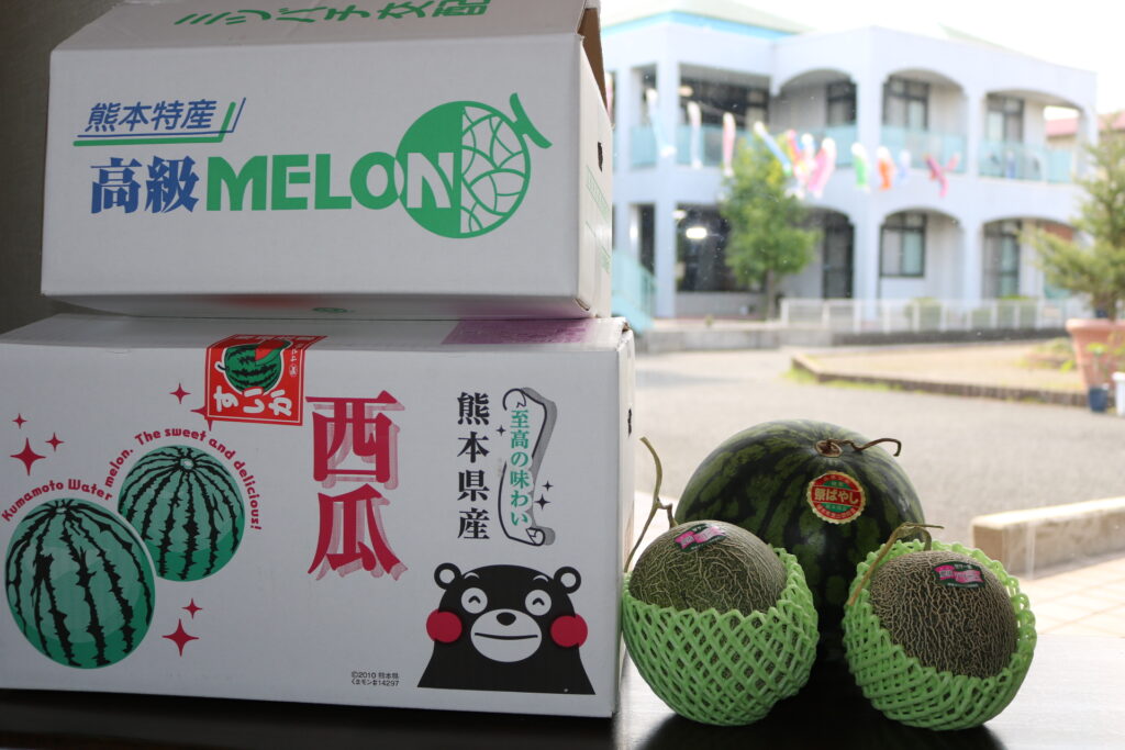 いつもご支援していただいている星様より、熊本県産のスイカとメロンをいただきました。星様には昨年末に高級ステーキ肉も寄贈していただきました。