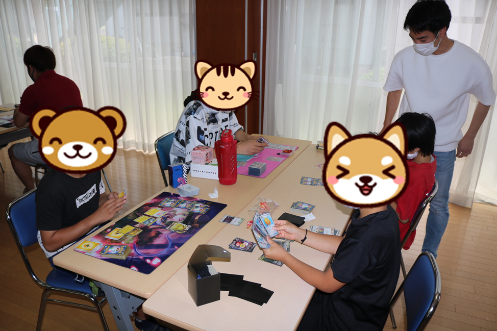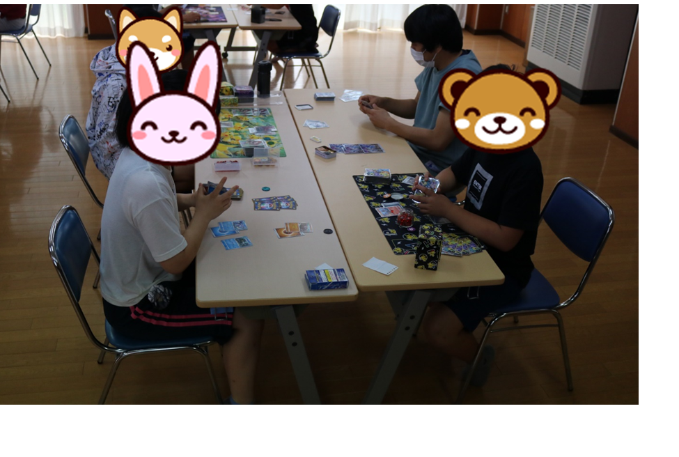 施設内でポケモンカードゲームの大会が開かれました。結構参加者がいます。